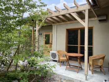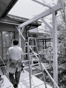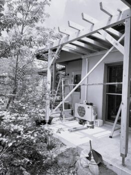 造園工事も済み、パーゴラ造作をご依頼いただきました。