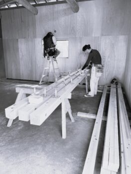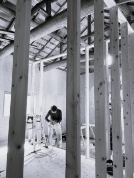 2Fの部屋になる部分の壁際にクローゼットを造作中